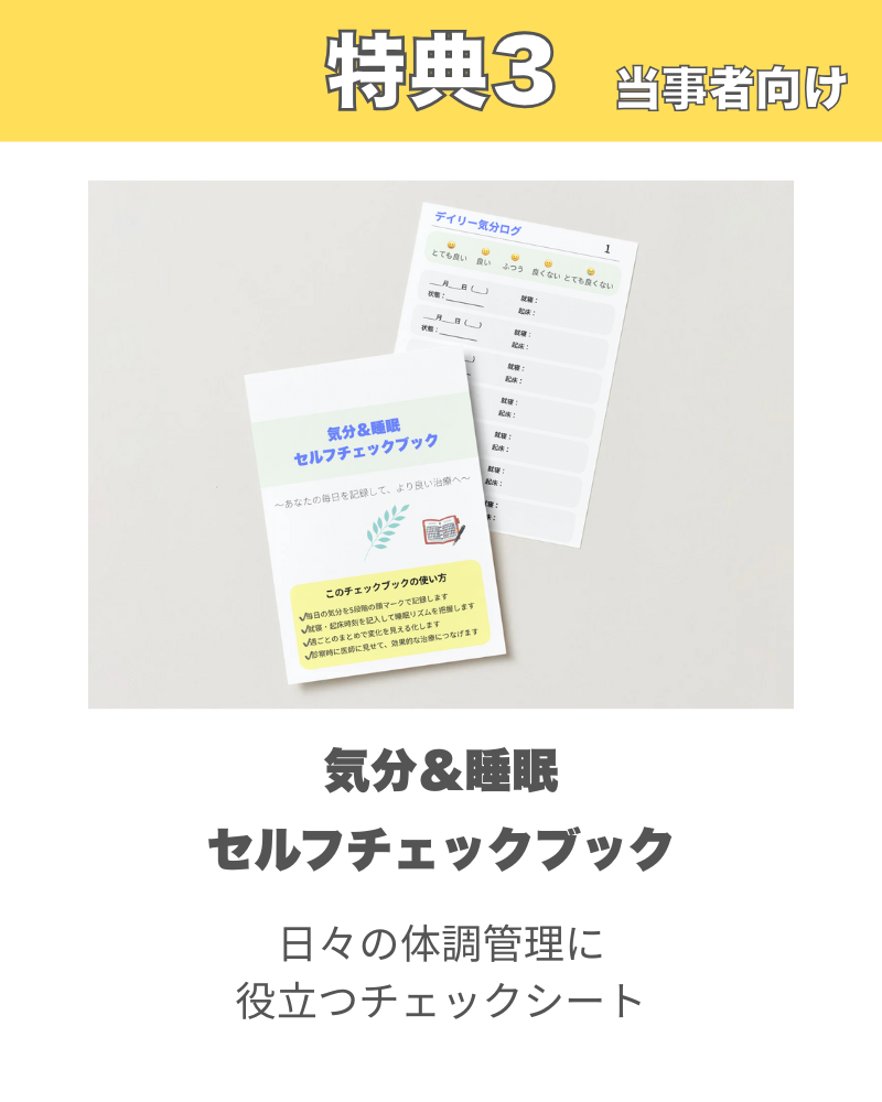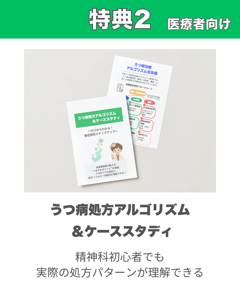 はい!今回の内容は、メインを精神科受診で悩みのある患者様向けに作成しています。