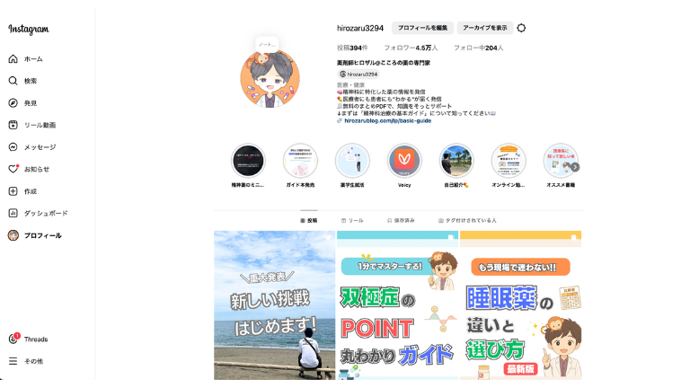 精神薬発信のInstagramアカウント実績
